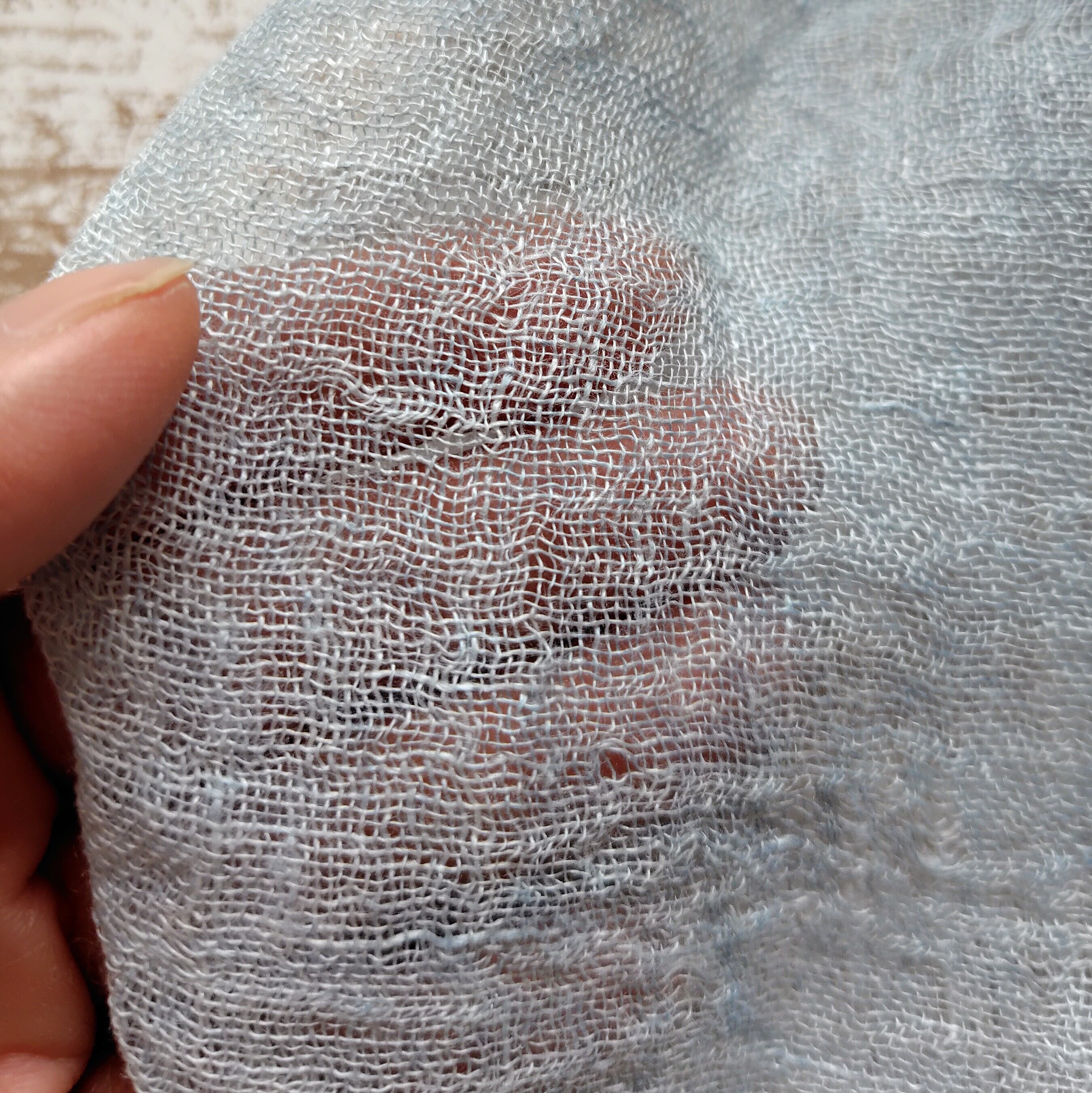 ふんわり柔らかい 大判 リネンガーゼストール 草木染め 藍染め* インド藍 薄めの藍染め