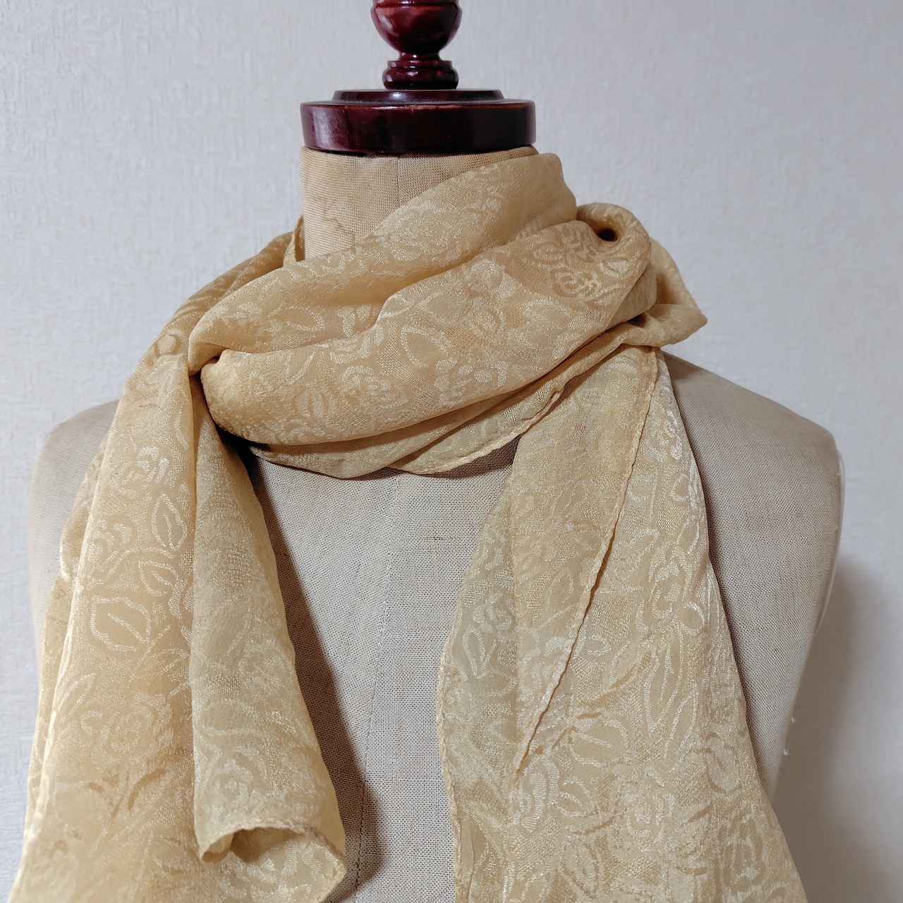 草木染め シルクプチ大判ストール 薔薇柄 どくだみ ドクダミ染め