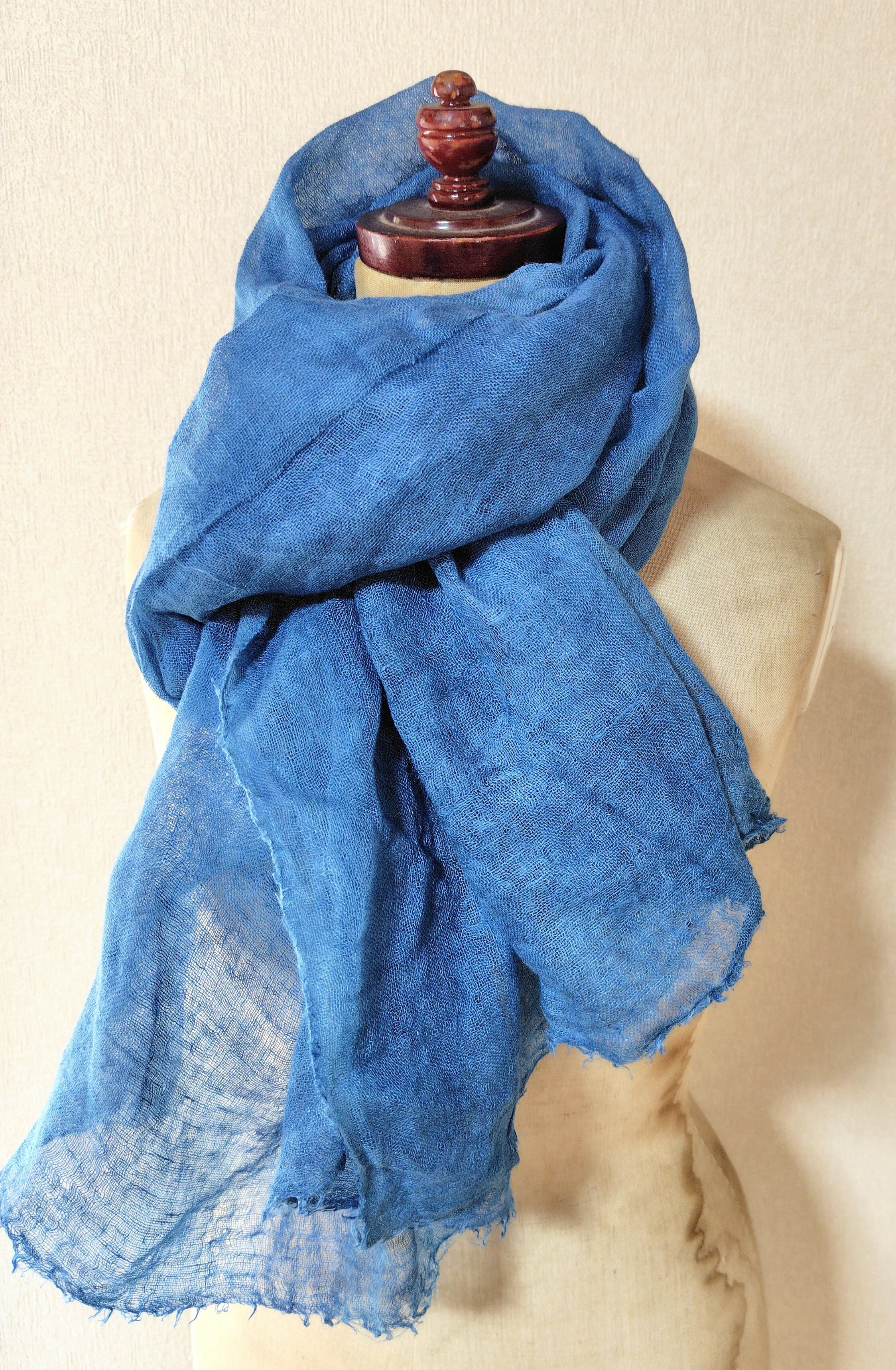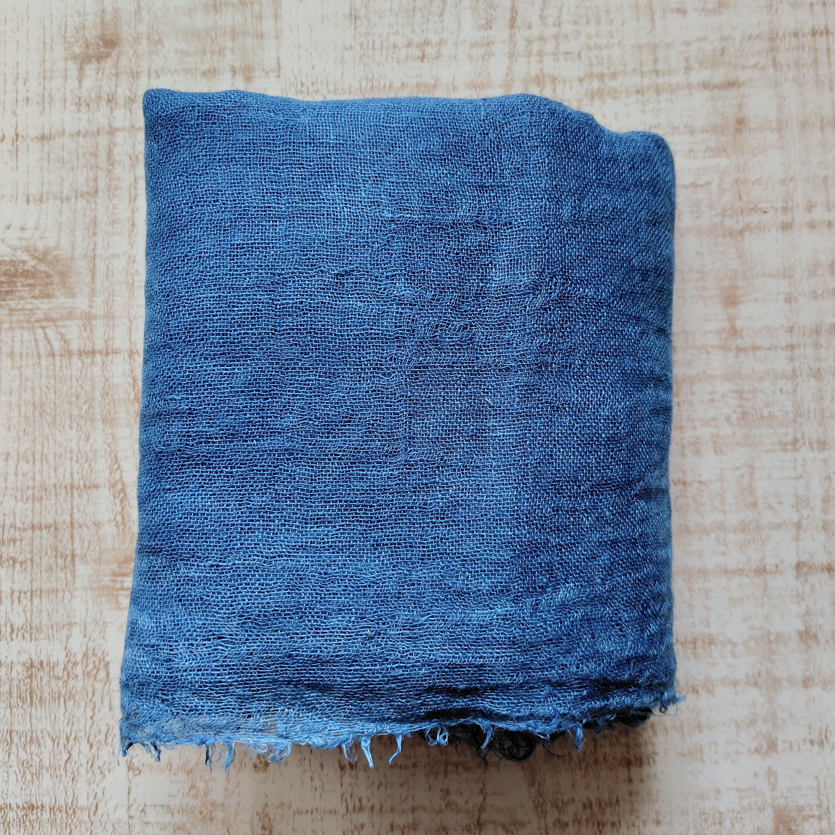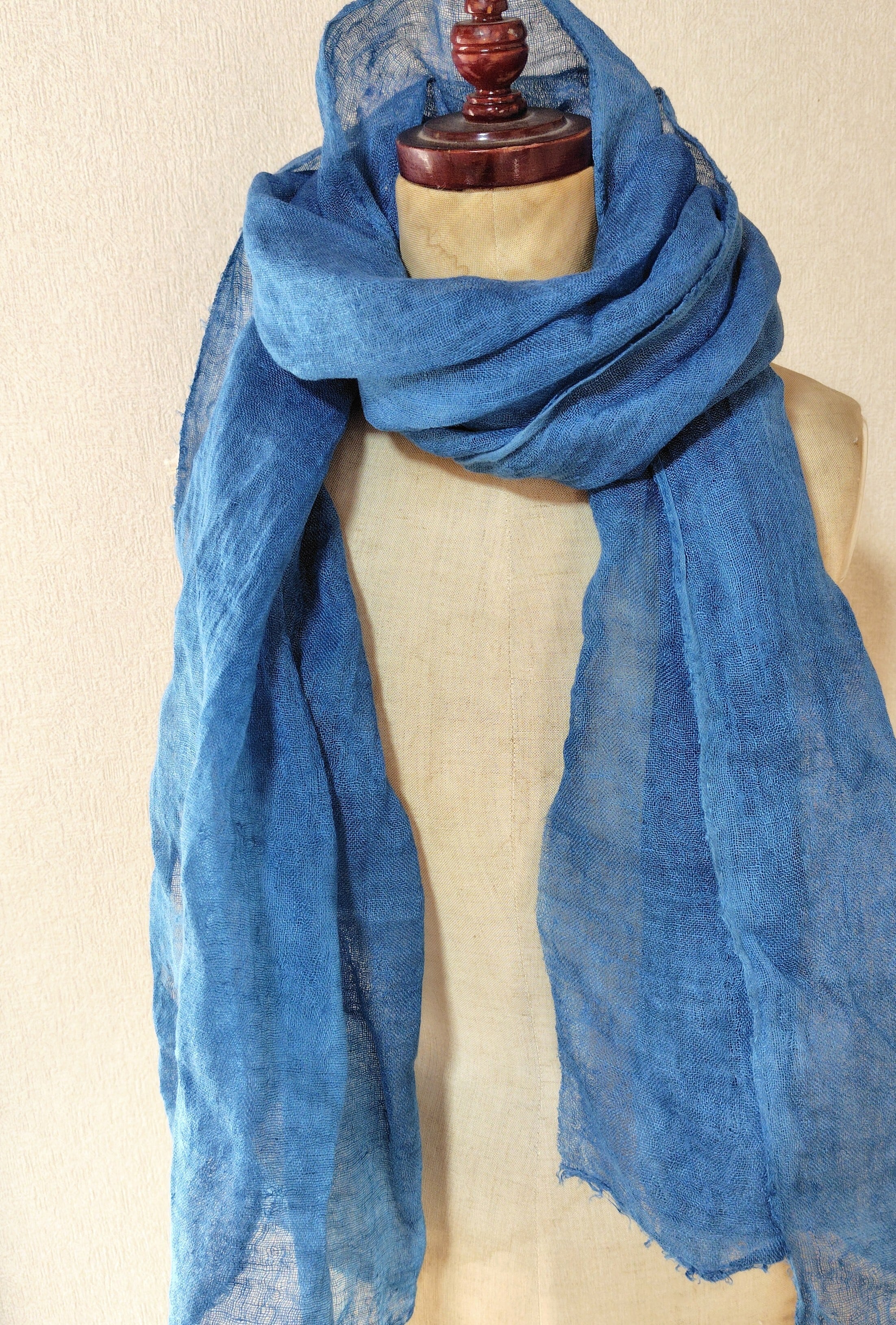 ふんわり柔らかい 大判 リネンガーゼストール 草木染め 藍染め* インド藍