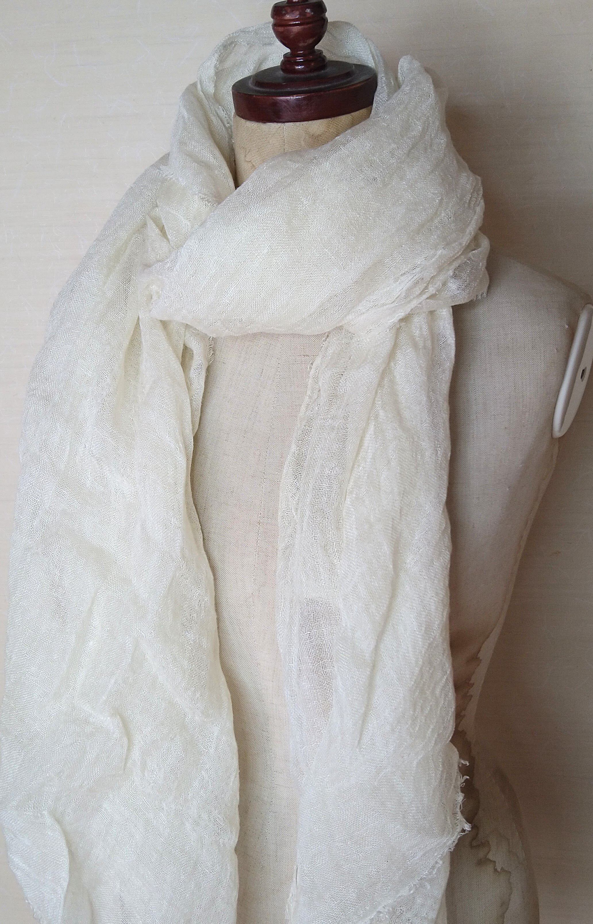 再販 ふんわり柔らか♪リネンガーゼストール 草木染め どくだみ染*