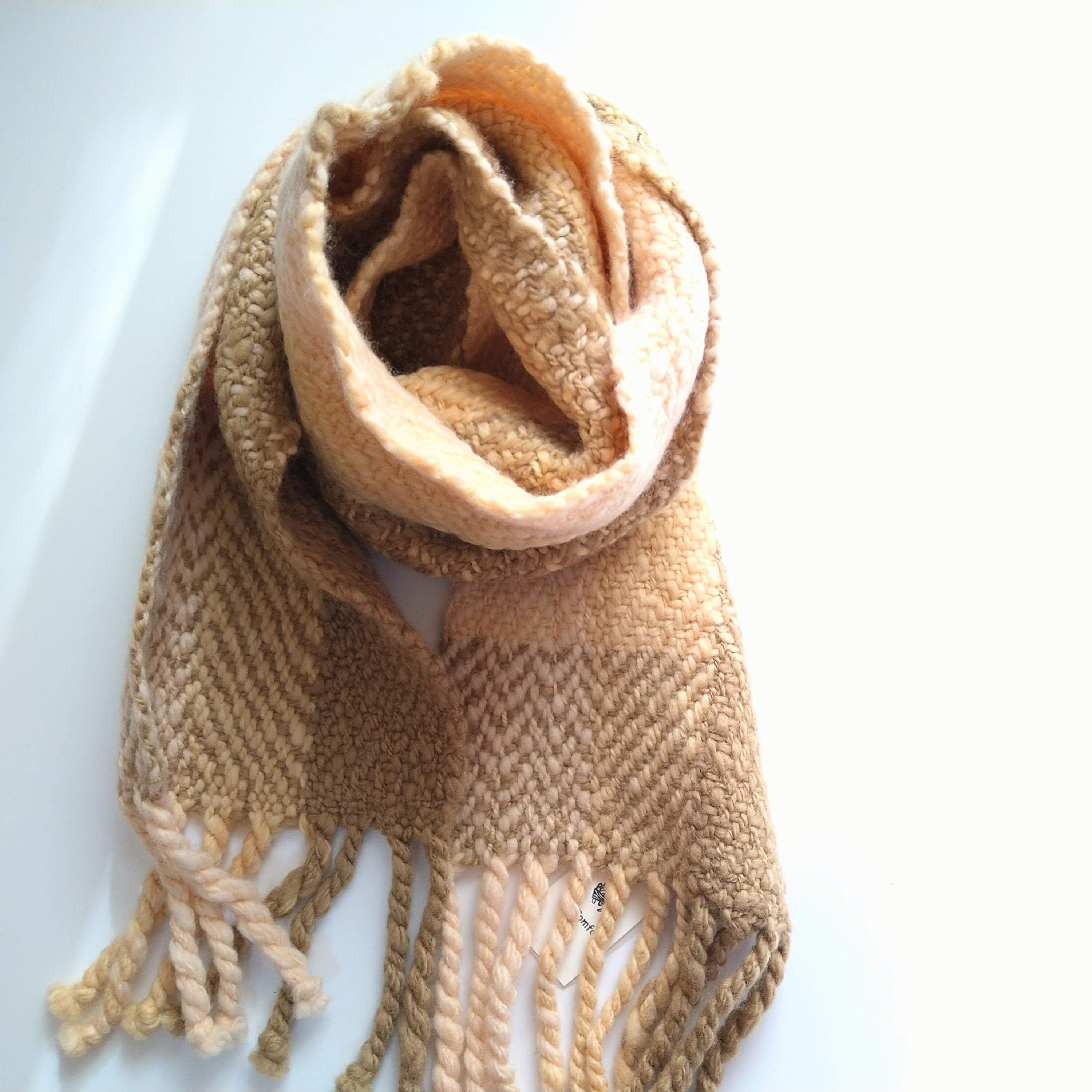 ホームスパン 草木染 ふっくらあったかな手紡ぎ糸を使った手織りミニマフラー