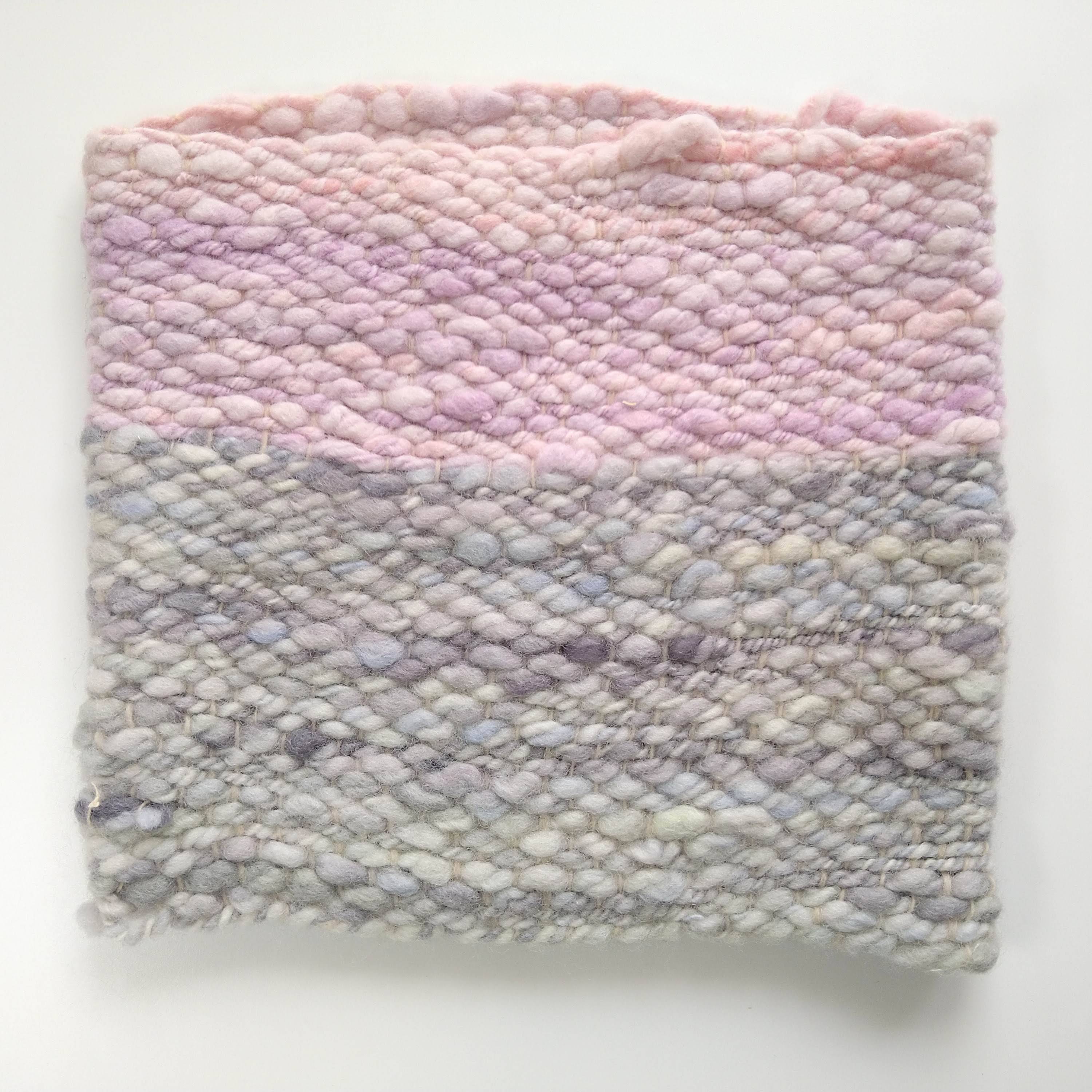 手染め手紡ぎ糸の手織りスヌード ブルーグレー&パープル メリノウール