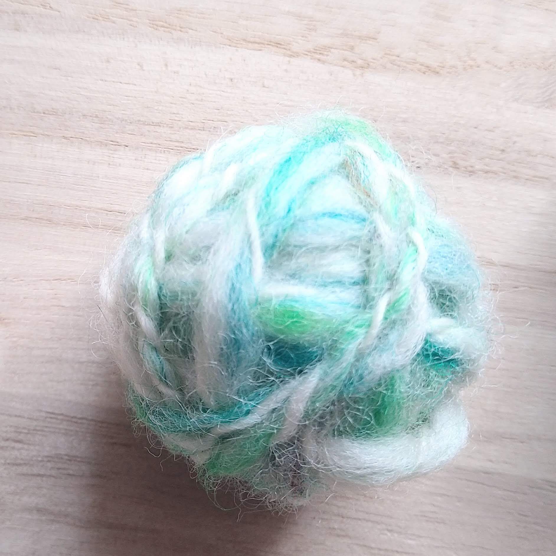 手染め羊毛を使って紡いだ、手紡ぎ糸。