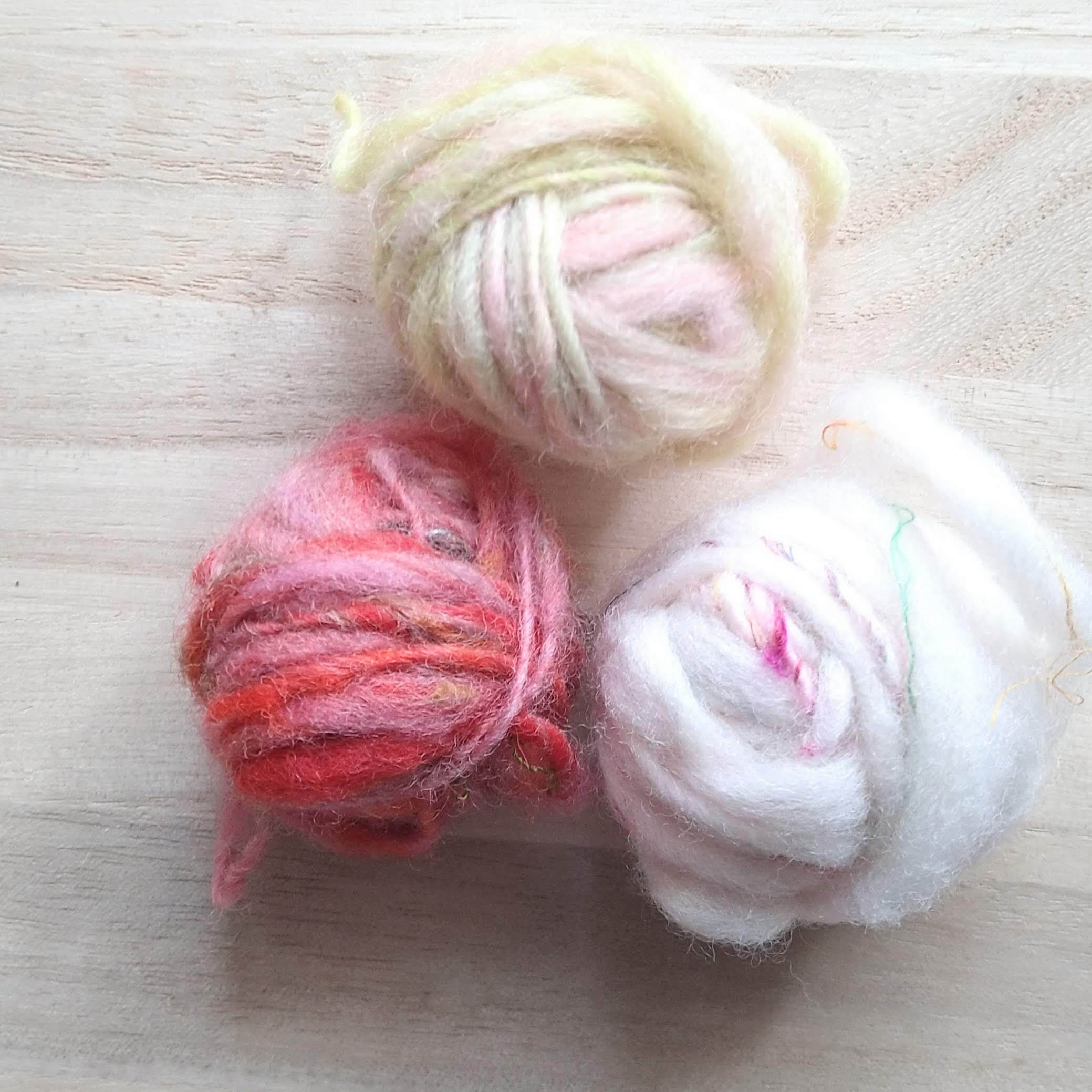 手染め羊毛を使って紡いだ、手紡ぎ糸。