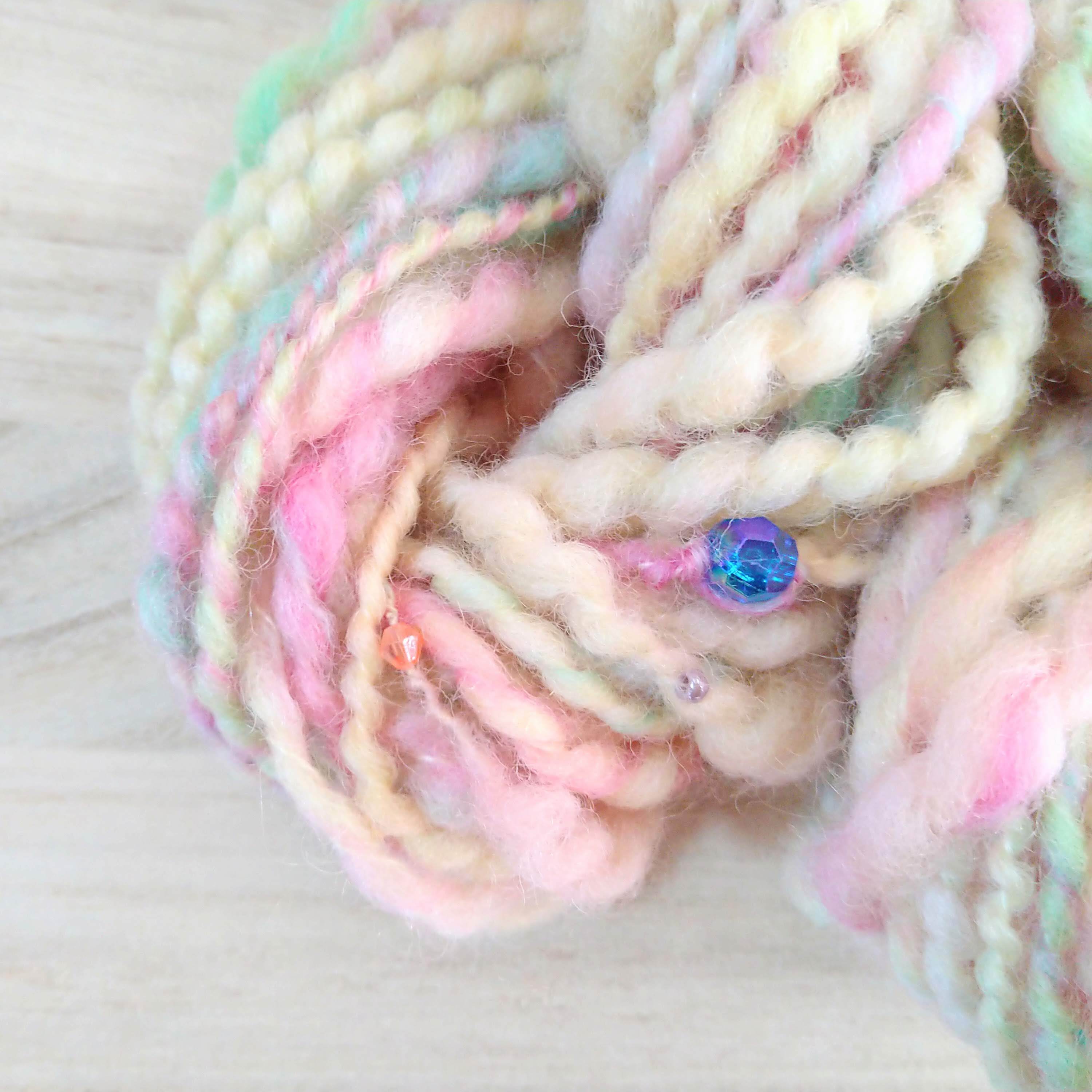 手染めの羊毛を使った手紡ぎ糸 ビーズヤーン 111